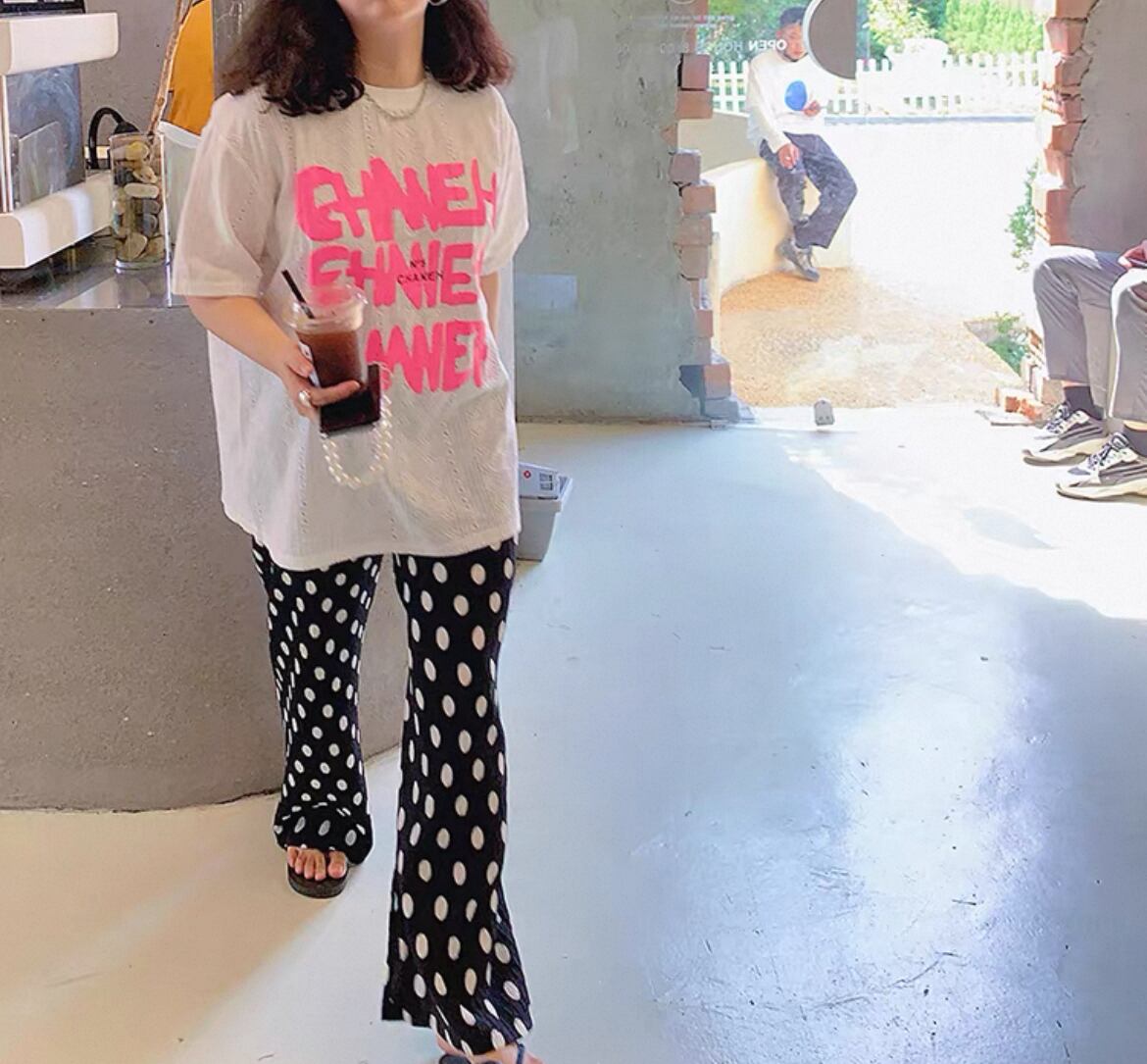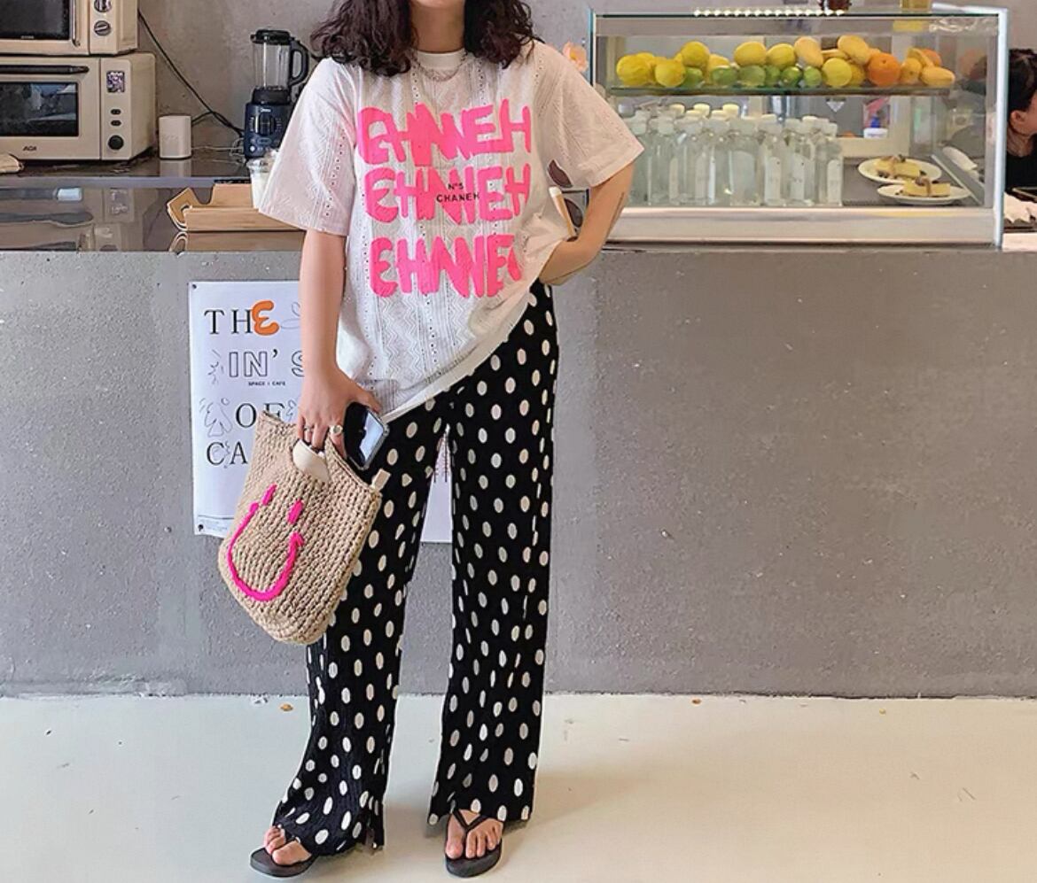 【予約】水玉ちゃんシワ加工リラックスパンツ