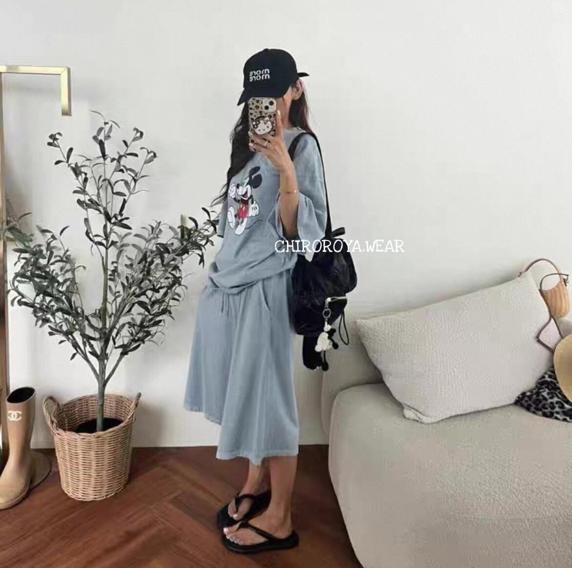 【予約】ピグメントミッキーTシャツ×ハーフパンツ2SET ライセンス商品 ディズニー