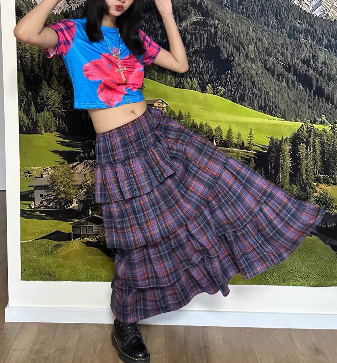 【予約】チェック柄×ティアードロングスカート bunnybunnygun