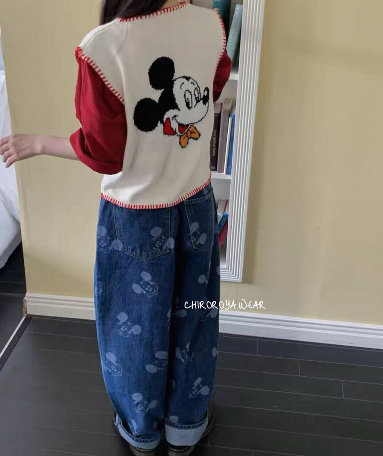 【予約】ミッキー総柄デニムパンツ ライセンス商品