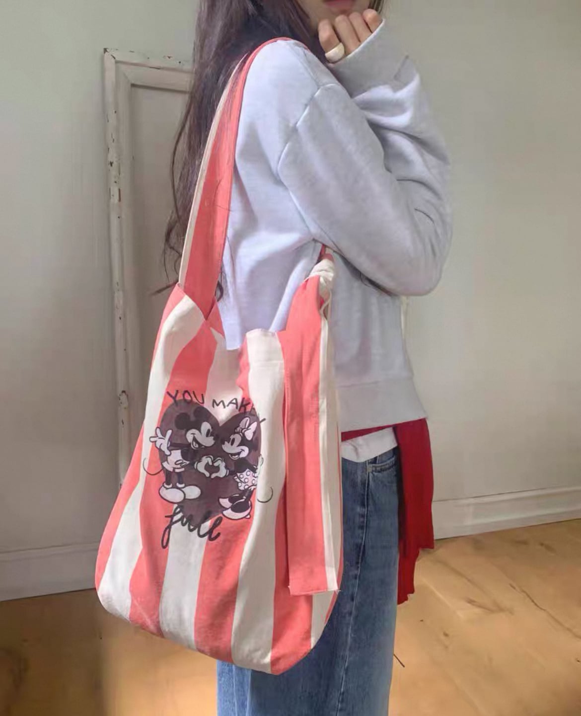 【予約】ストライプ×ミッキーミニーショルダーバッグ ライセンス商品