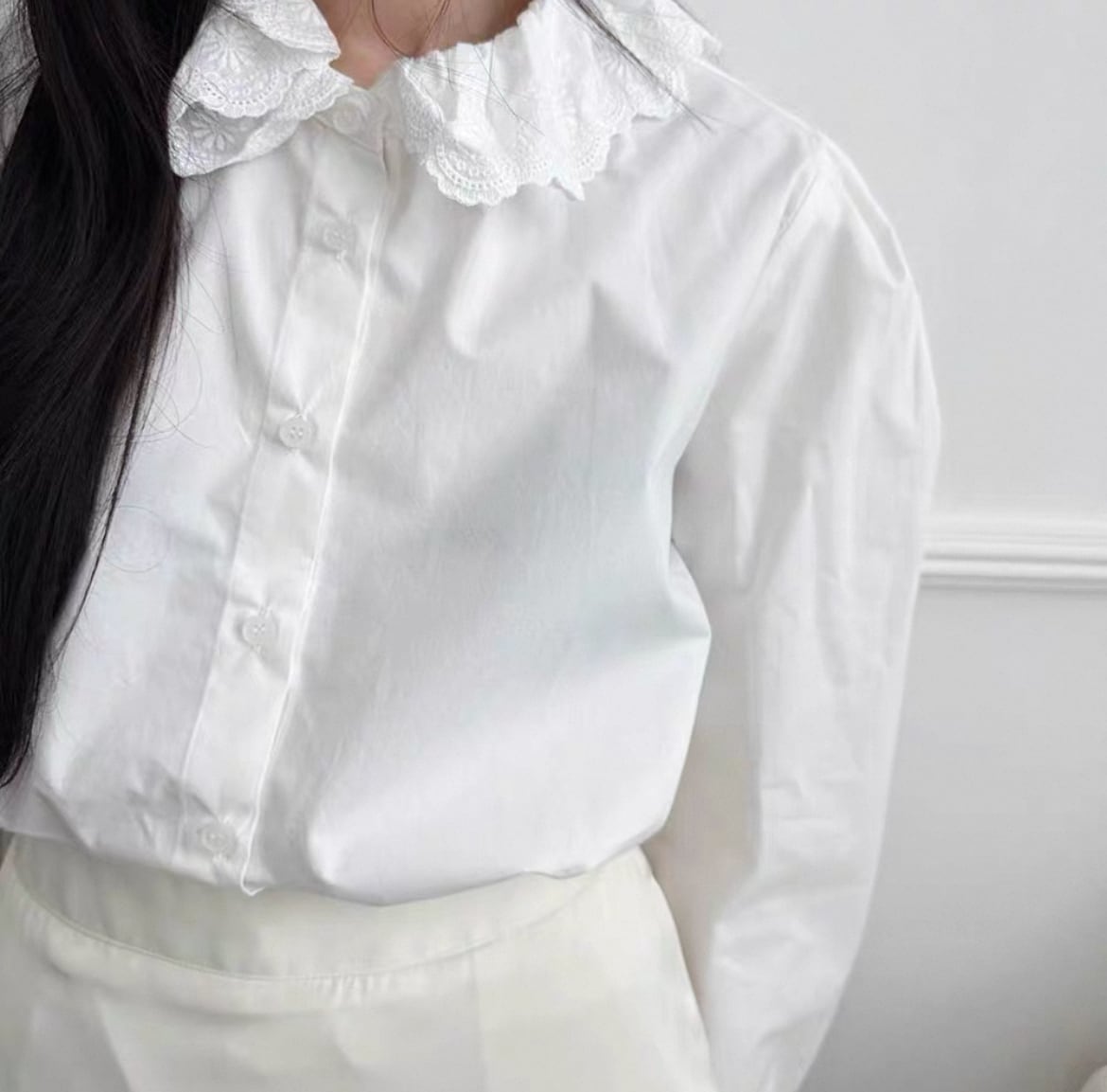 【予約】フラワーレース襟シャツ