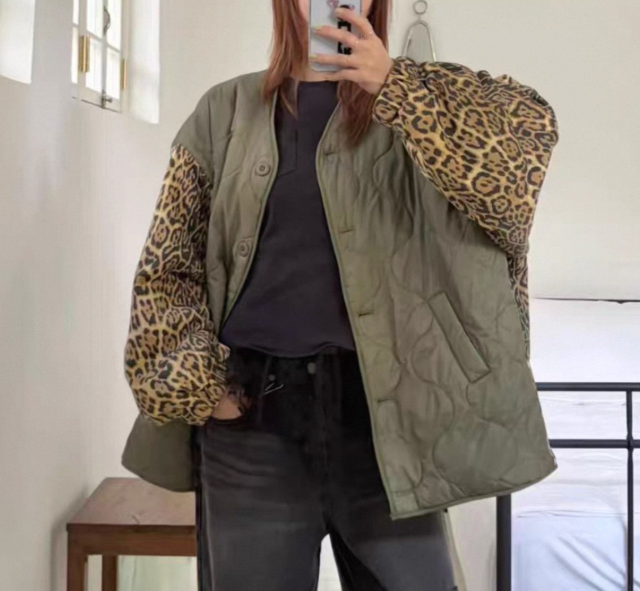 【予約】ヒョウ柄ちゃん切り替えキルティングジャケット