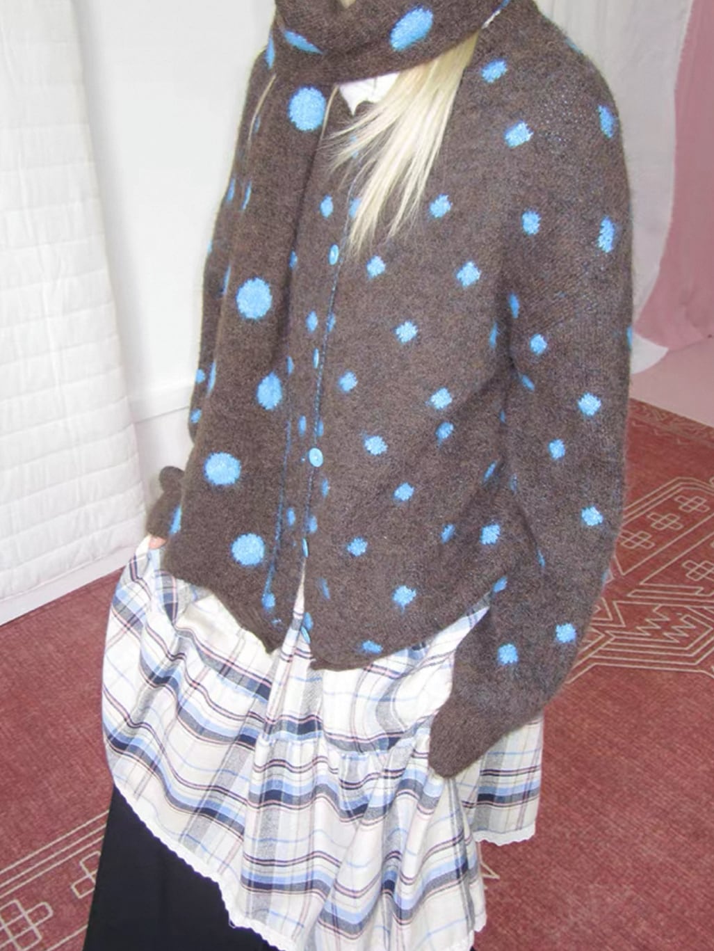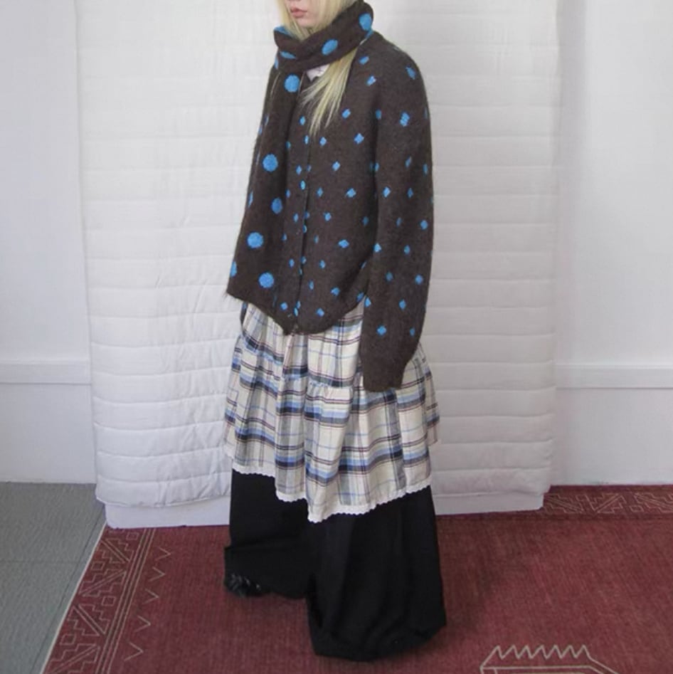 ★ブルーのドット柄がポイントのプルオーバーです♡♡マフラー付きでオシャレにきまります^_^
