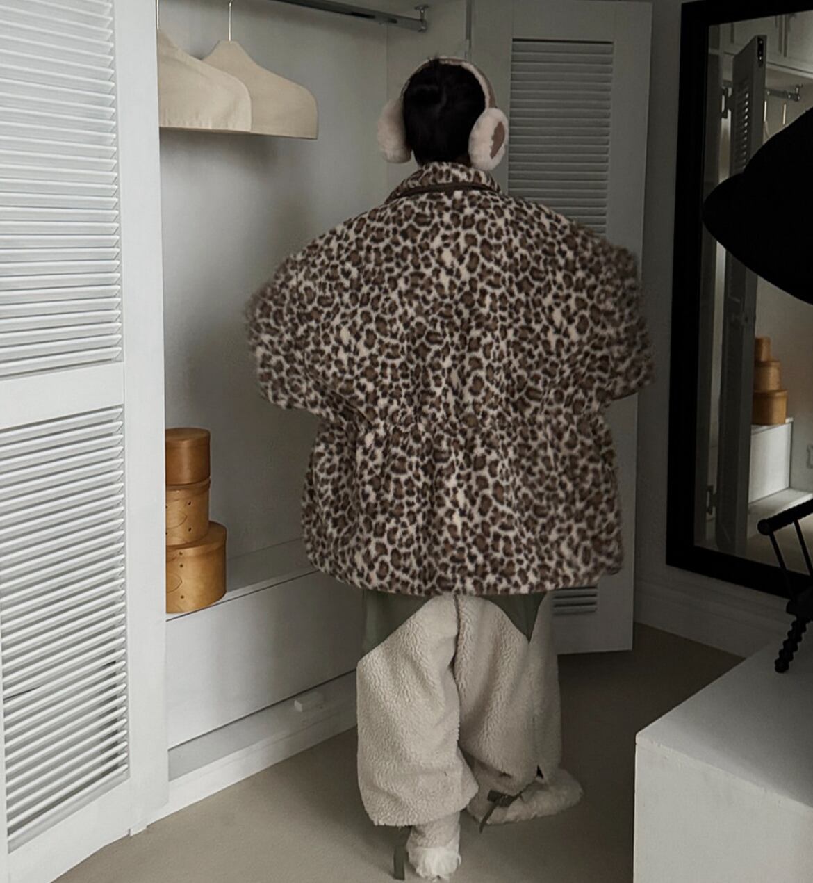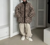 ★大きな前ポケが便利♡フリース×ヒョウ柄は間違いなく可愛いデザインです^_^