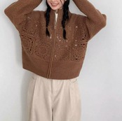 アウターインや羽織りとして、大活躍のレースニットブルゾンです♡♡