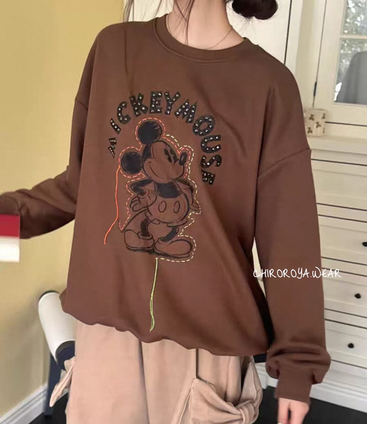 ★カラーのステッチデザインが印象的なミッキースウェット♡ロゴに重ねてスタッズも付いています^_^