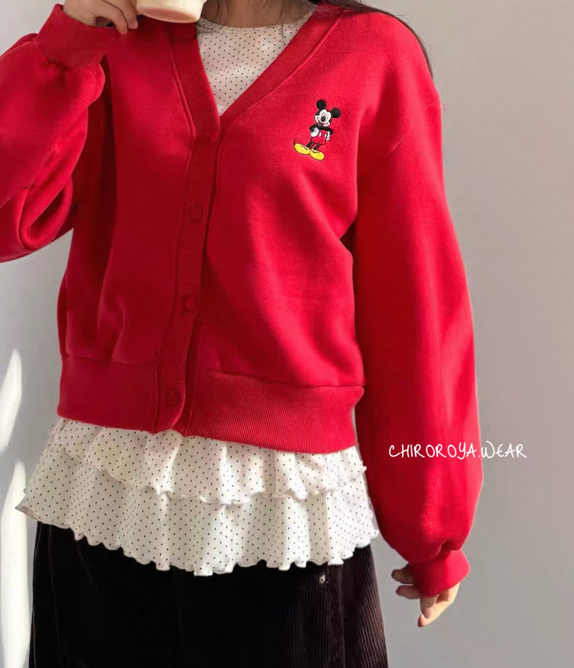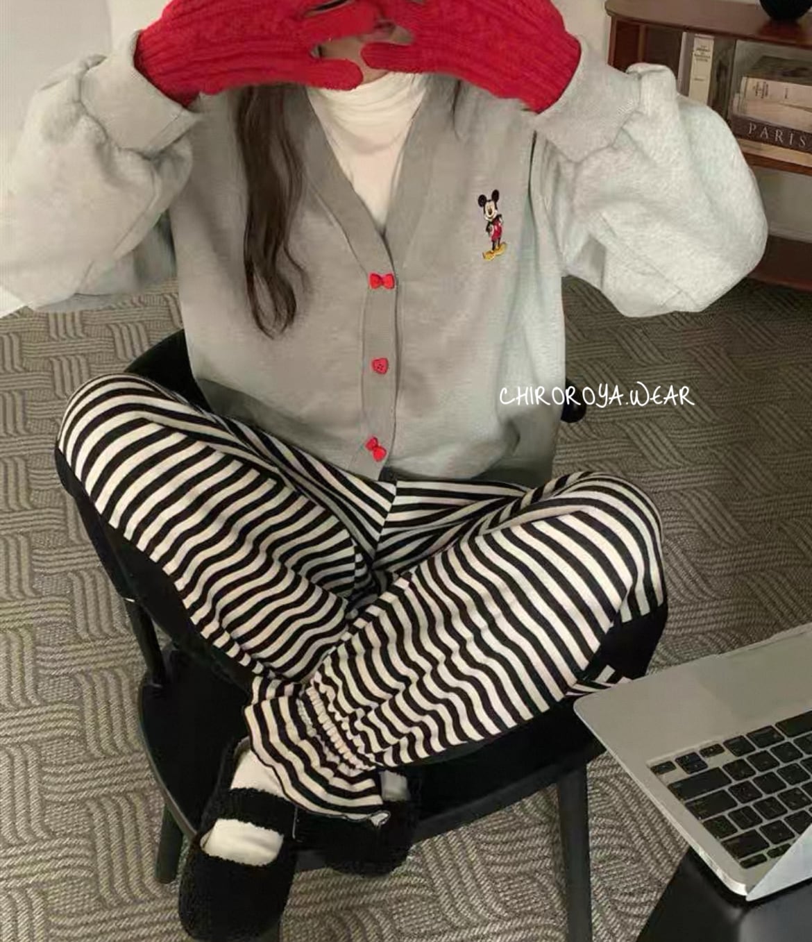 【予約】ハートリボンボタン×ミッキーカーディガン ライセンス商品