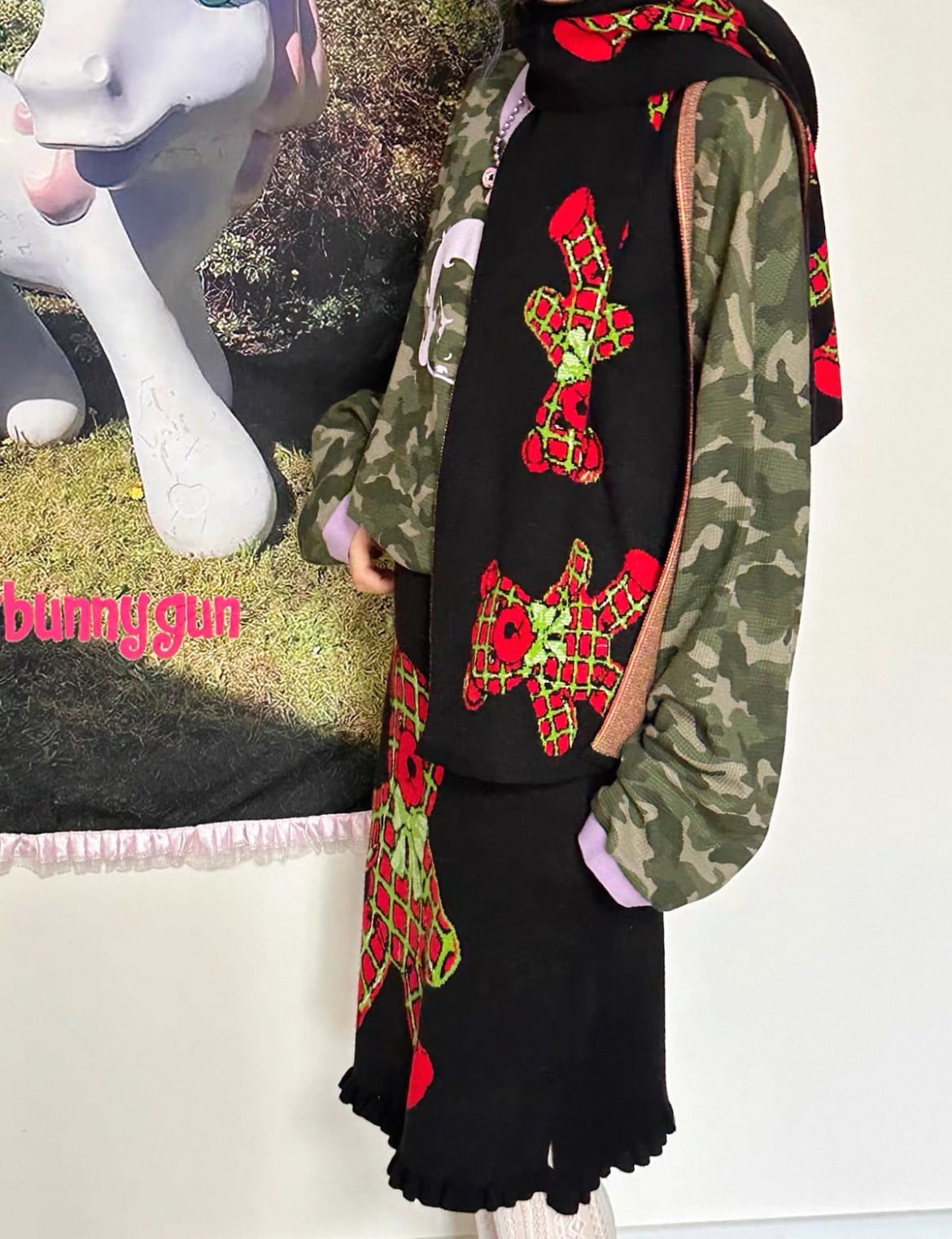【予約】チェック柄くまちゃんニットマフラー bunnybunnygun