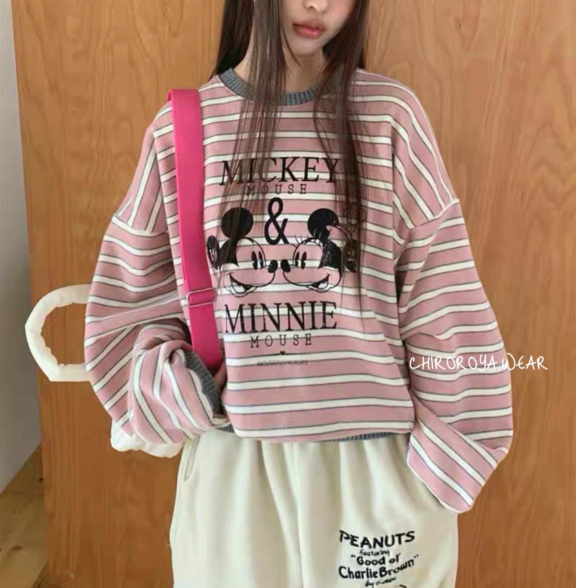 【予約】ミッキーミニー×ボーダースウェット rmjライセンス商品