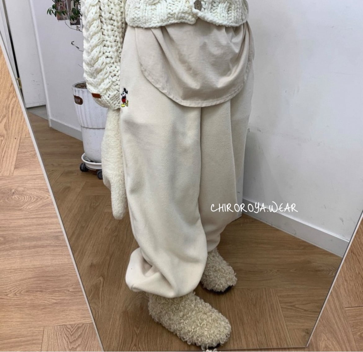★ワンポイントのミッキー刺繍入りフリースパンツです♡裏地起毛で暖かさもup^_^