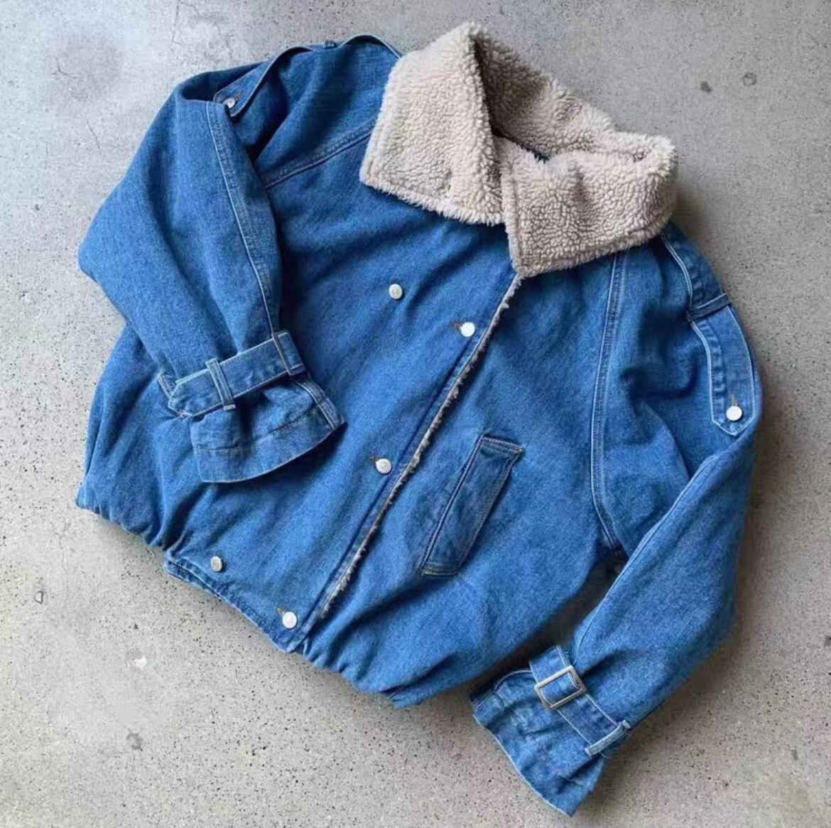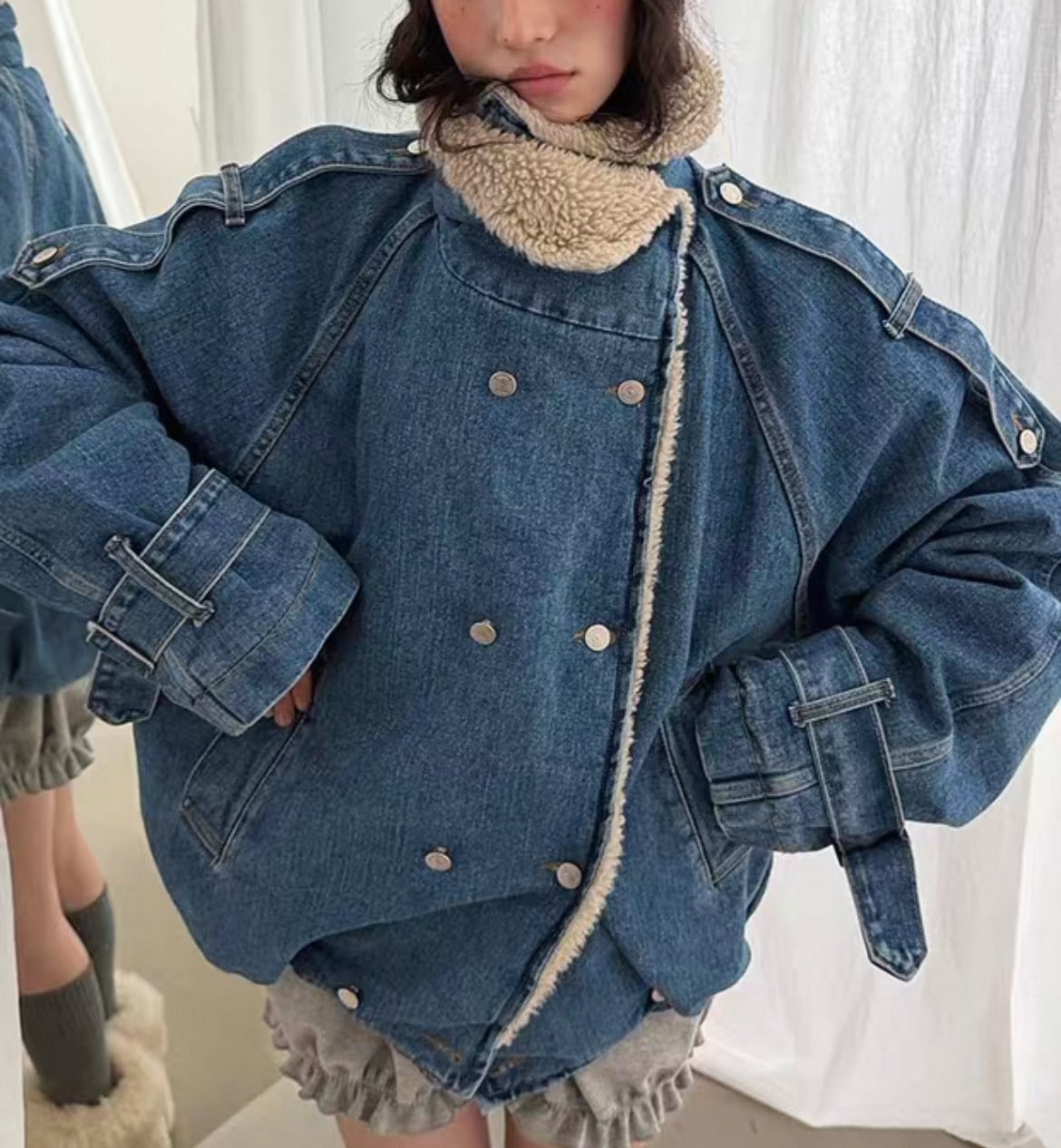 ★裏ボアが暖かいデニムライダースジャケットです♡閉めても開けても綺麗なライン^_^
