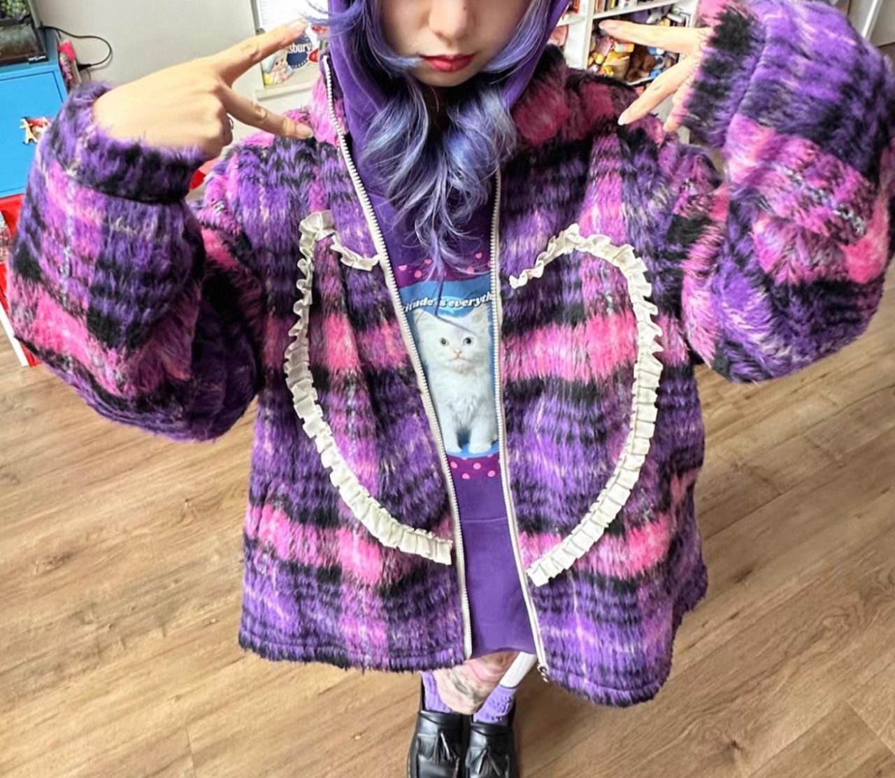 ★スタンドカラーでパーカーとの組み合わせも♡パープル強めでカジュアルガーリーに^_^