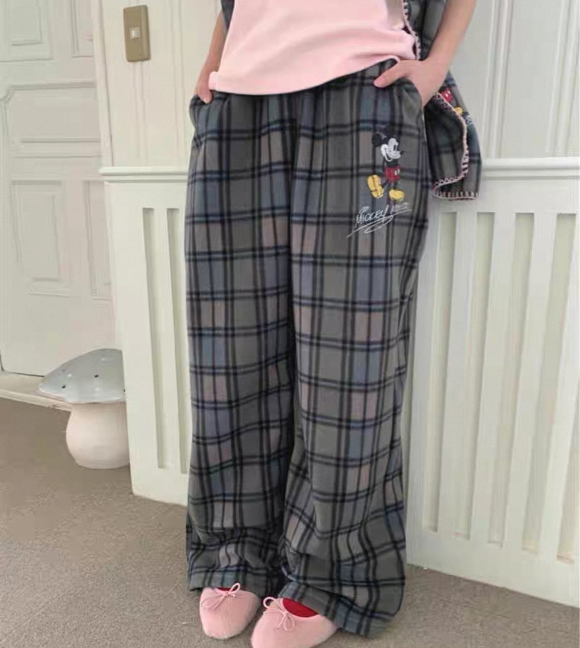 【予約】フリースチェック×ミッキーパンツ ライセンス商品