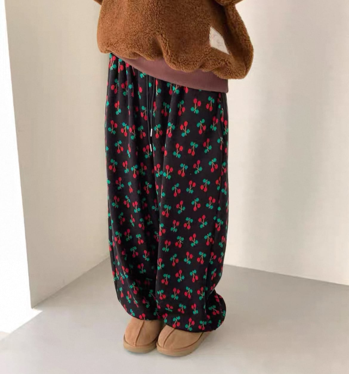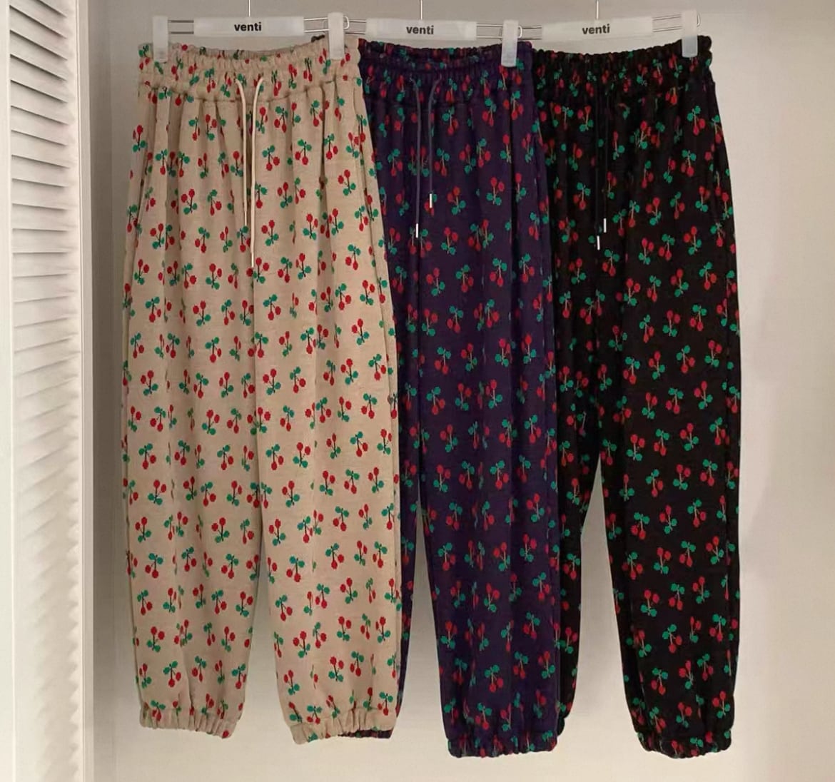 ☆総柄なのに派手じゃない!?可愛いさくらんぼのレトロっぽジョガーパンツ^_^