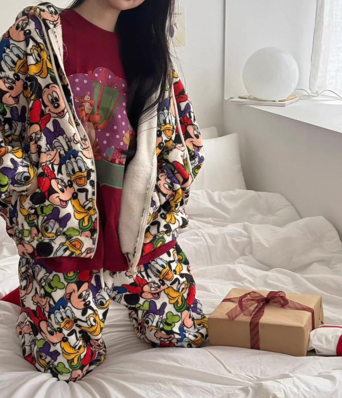 ☆ミッキーフレンズギッシリの裏ボアパーカーです♡寒い日にはアウターにINして着るとオシャレに^_^