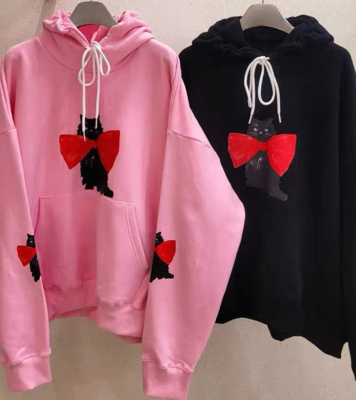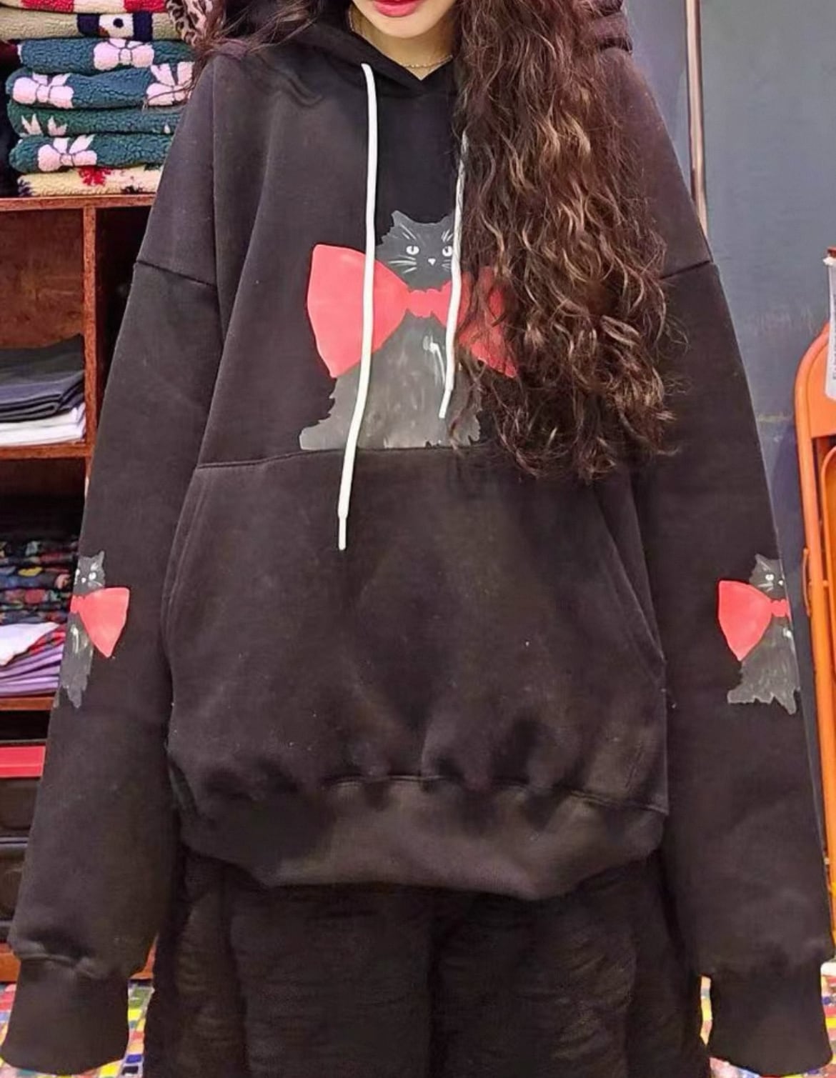 ☆猫ちゃん好きにおすすめのインパクト大デザイン♡ボリュームのあるキルティングパンツと合わせると可愛いです^_^