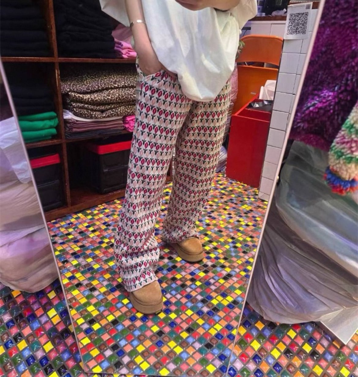 ☆レトロなお花柄の暖かいニットパンツ♡