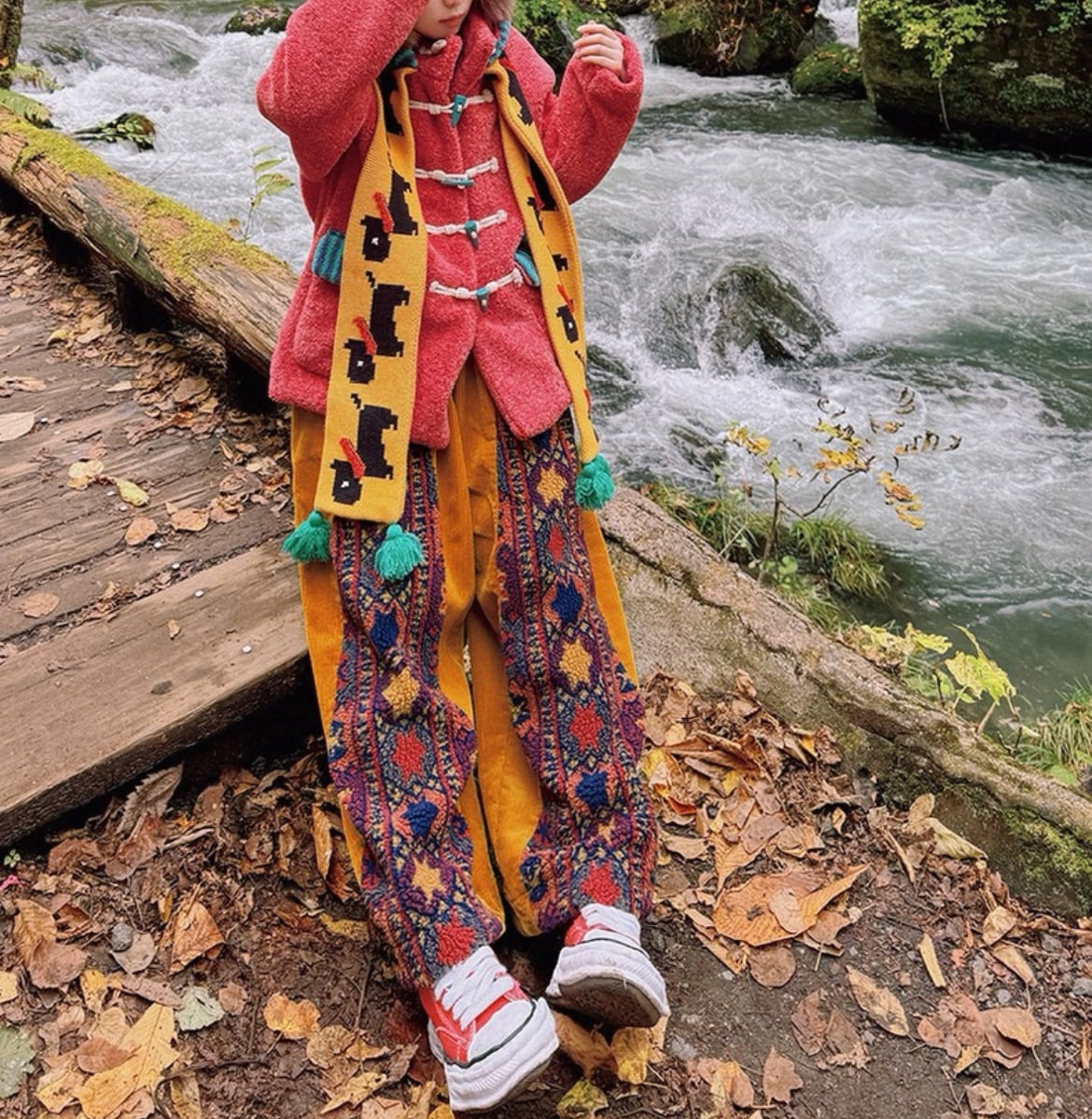 ☆もこエスニック柄がインパクト大♪コーデュロイとの相性抜群のウエストゴムパンツ!