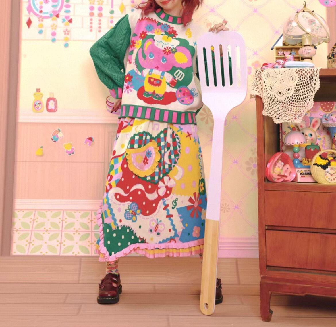 【予約】裾フリル総柄ニットスカート LutraJump
