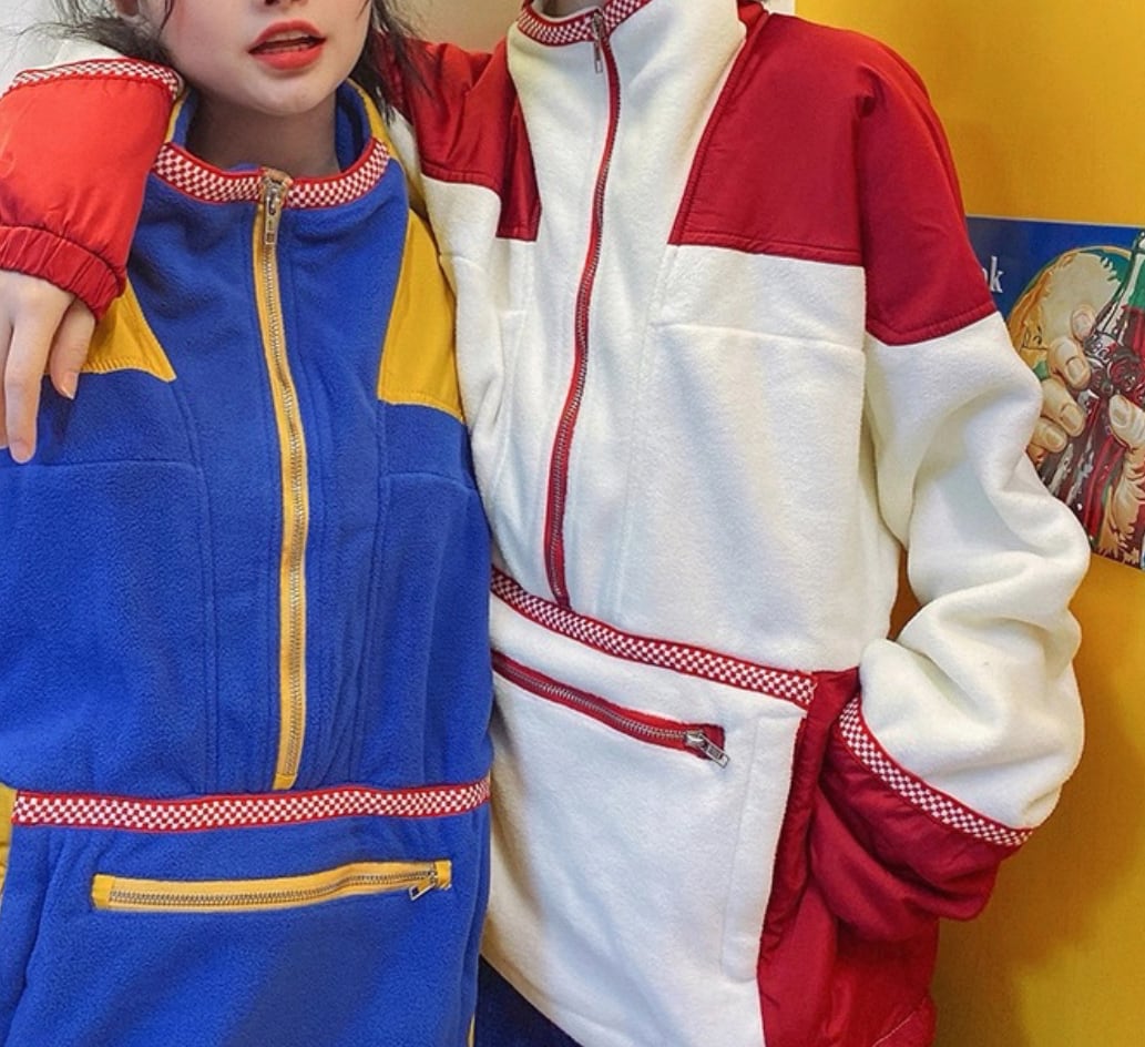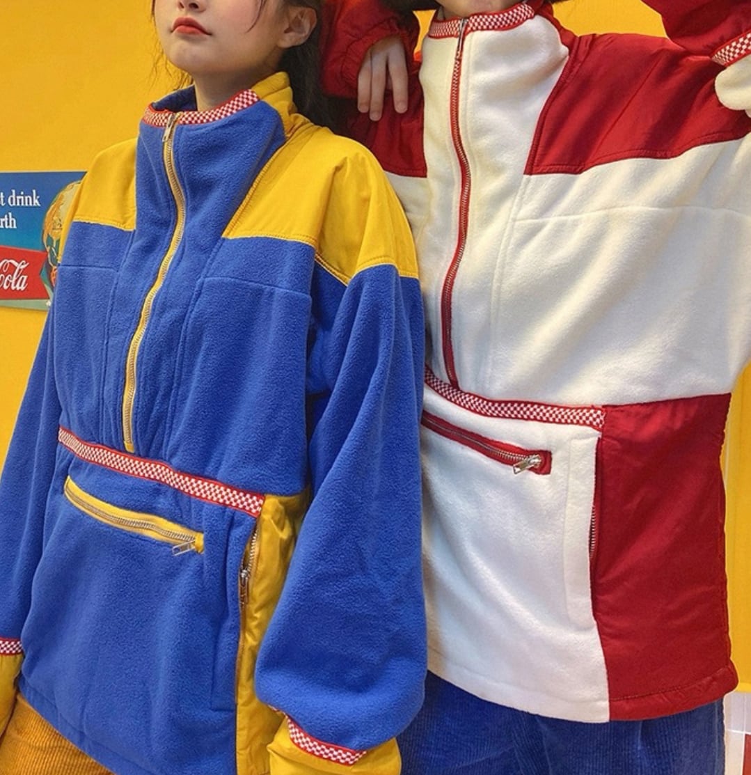 ★カラフル配色のフリースプルオーバー♡切り替えパターンでモッタリしないTOPS。アウター代わりにもできます^_^