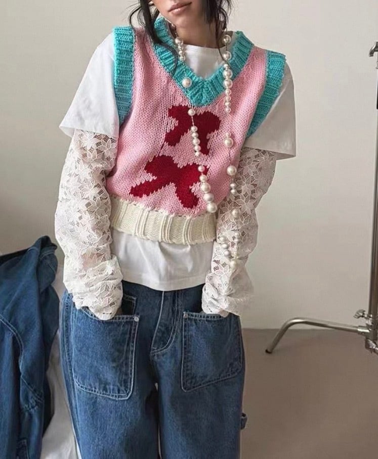 ★カラー使いが可愛いニットベスト♡