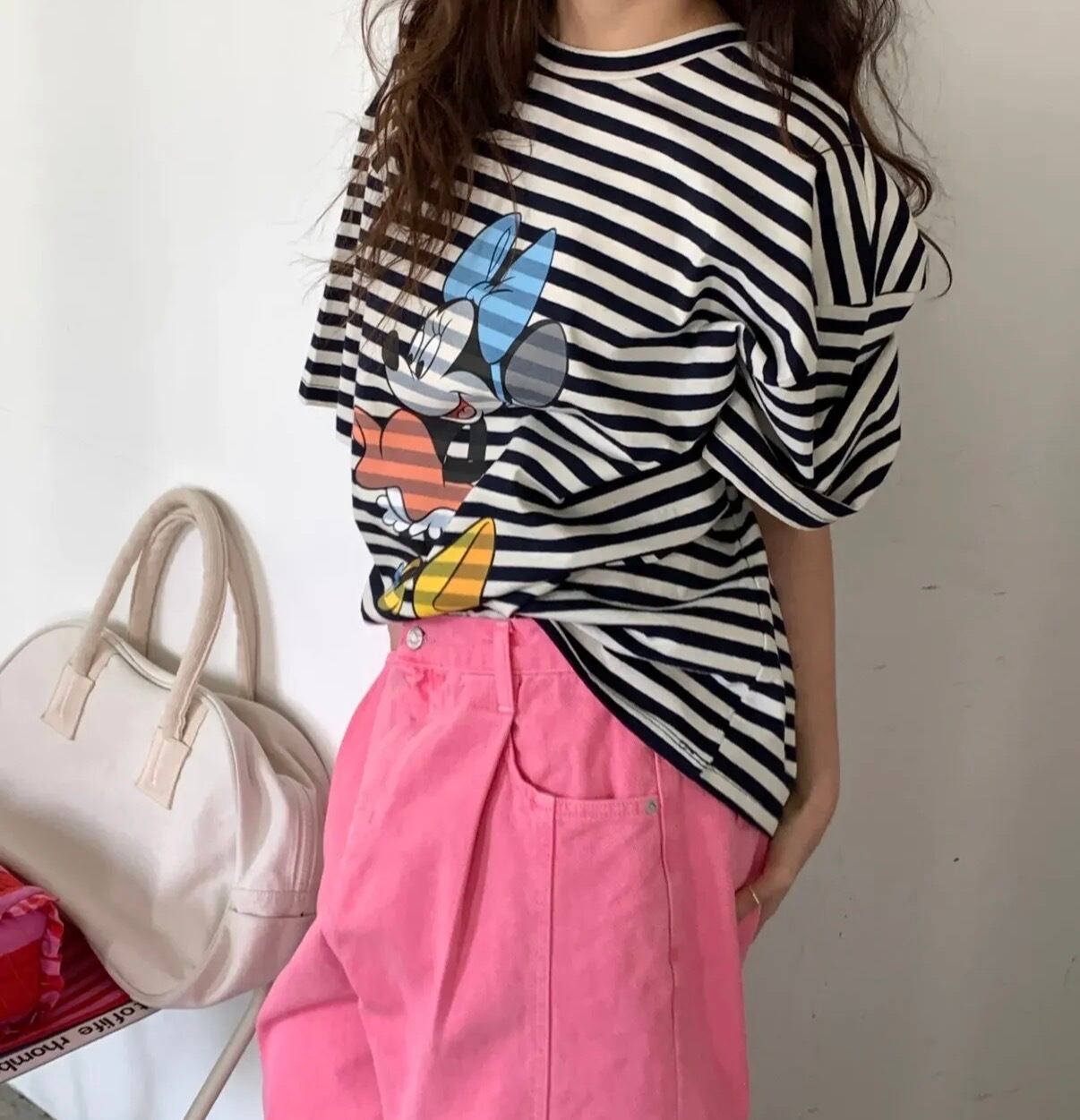 ★おおきいサイズのミニーが印象的なボーダーTです♡カラーパンツと合わせると簡単オシャレに(^^)