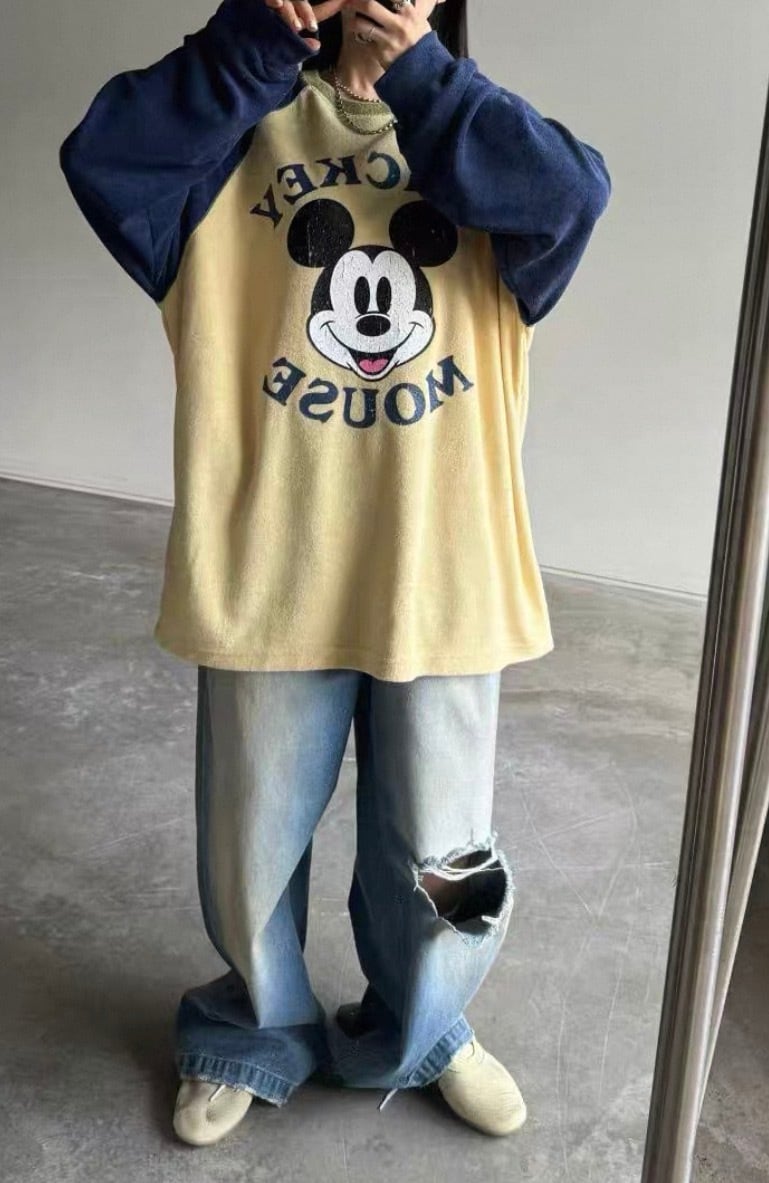 【予約】パイル地×ミッキー長袖ラグラン ライセンス商品 vts