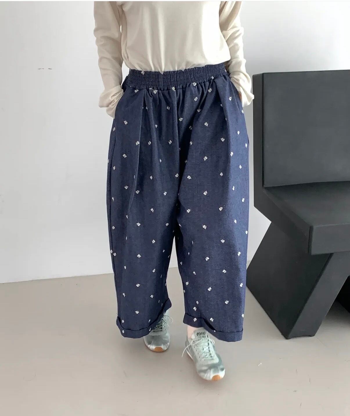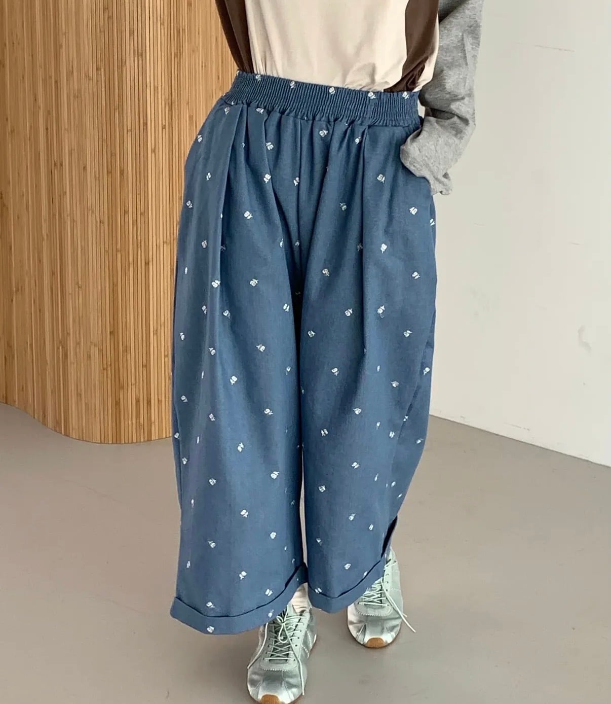 ☆刺繍と裾ロールアップが可愛いデザイン♡
