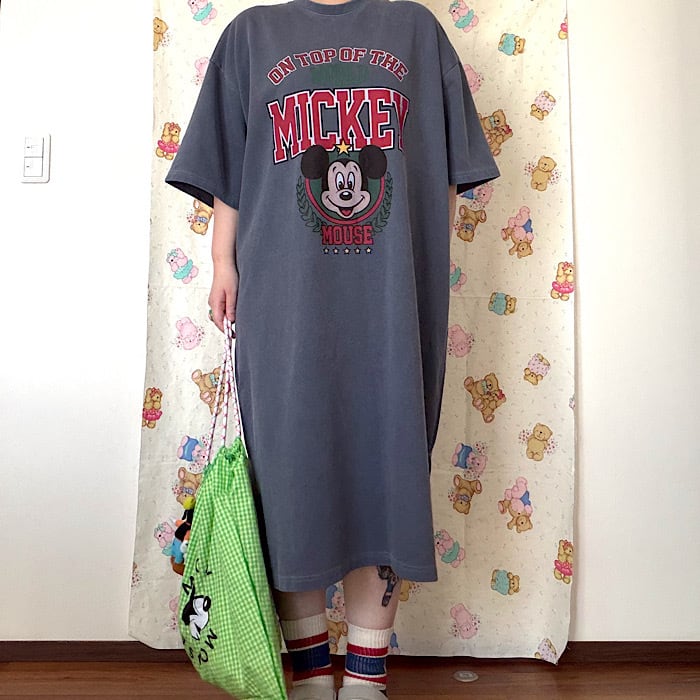 ☆人気のピグメント加工♡しっかりとした厚みのある生地です。こちらのミッキーデザインは大変人気でルームウェアにもお出かけ着にもどちらでも使えます(^^)