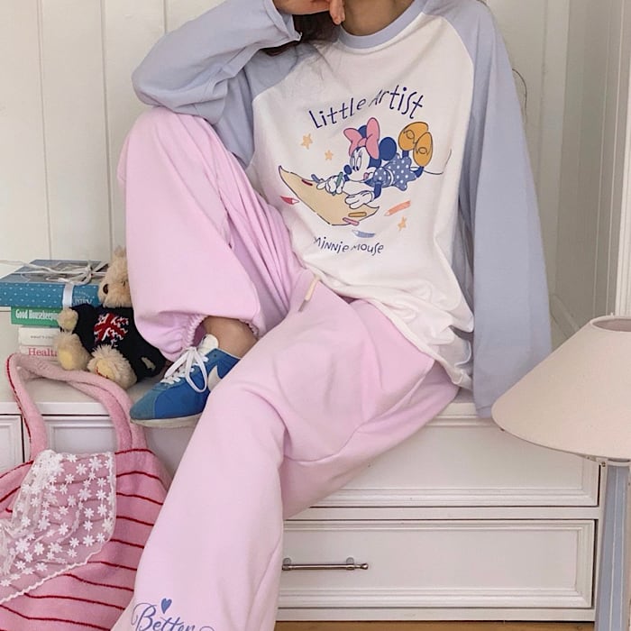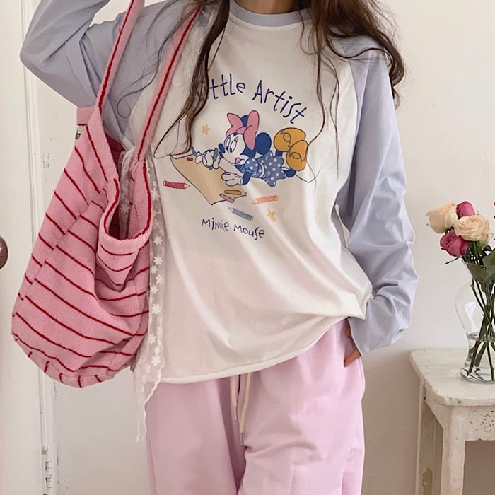 【予約】littleartist×ミニーラグラン長袖Tシャツ ライセンス商品