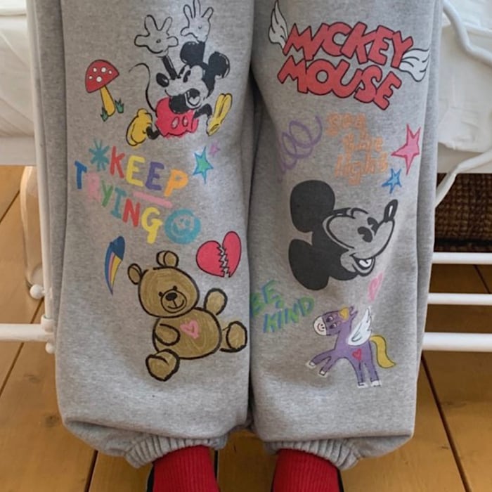 人気のジョガーパンツに落書きミッキーが♡