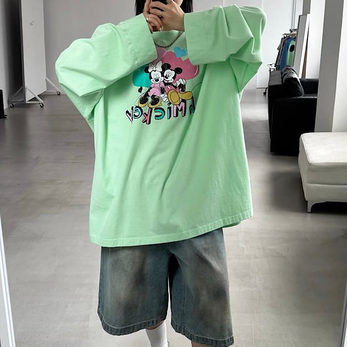 【予約】ミッキーミニー×ハート長袖Tシャツ ライセンス商品