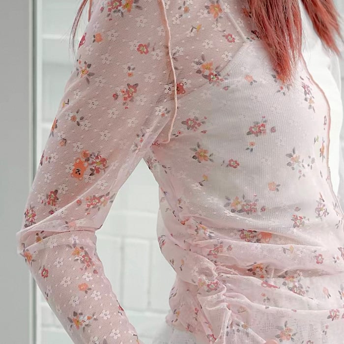 ☆2デザインの切り替えシアーカットソーです♡花柄でガーリーなTOPSです。ワンピースやキャミソール、Tシャツ等合わないコーデは無いくらい使いやすいです(^^)