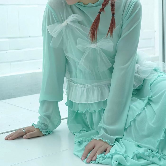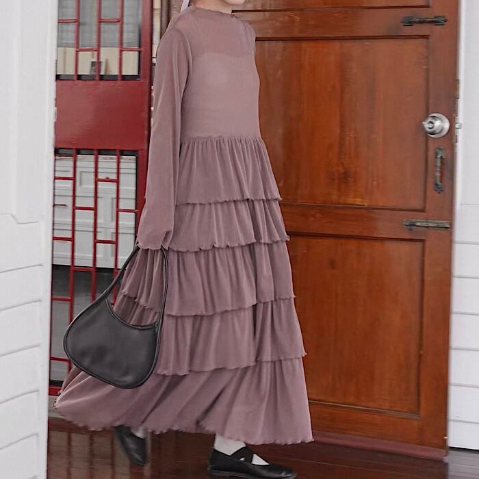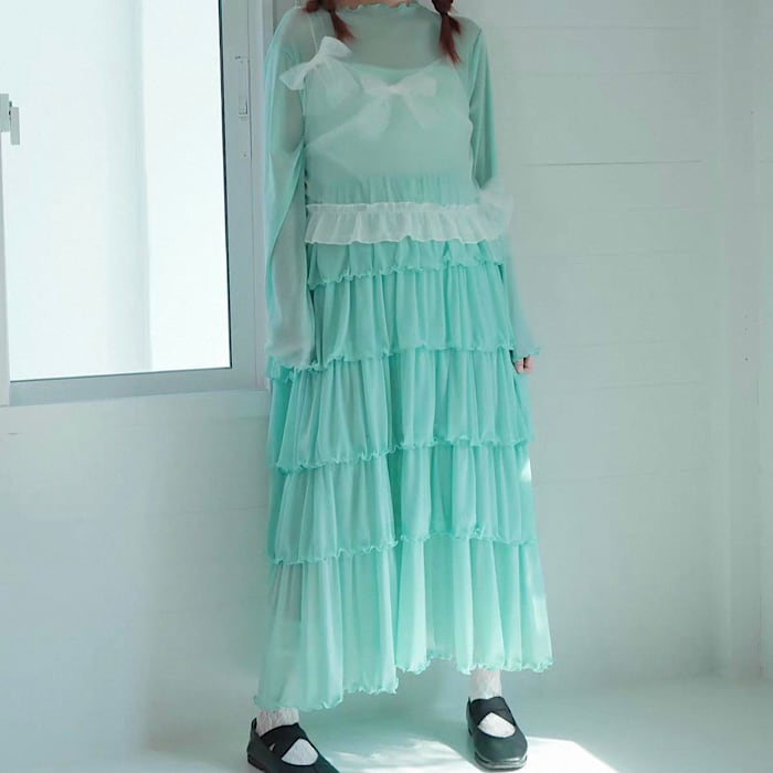 【予約】ラメ入りシアーフレアワンピース 2Color
