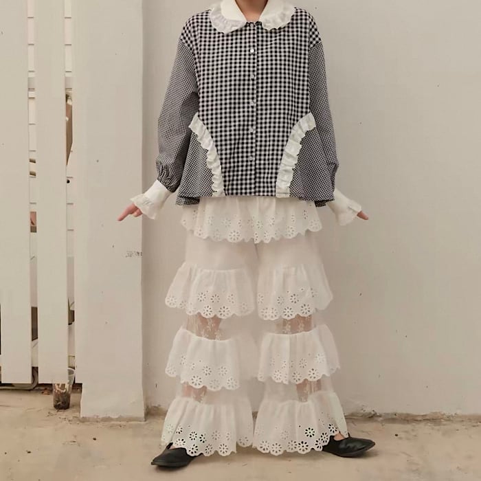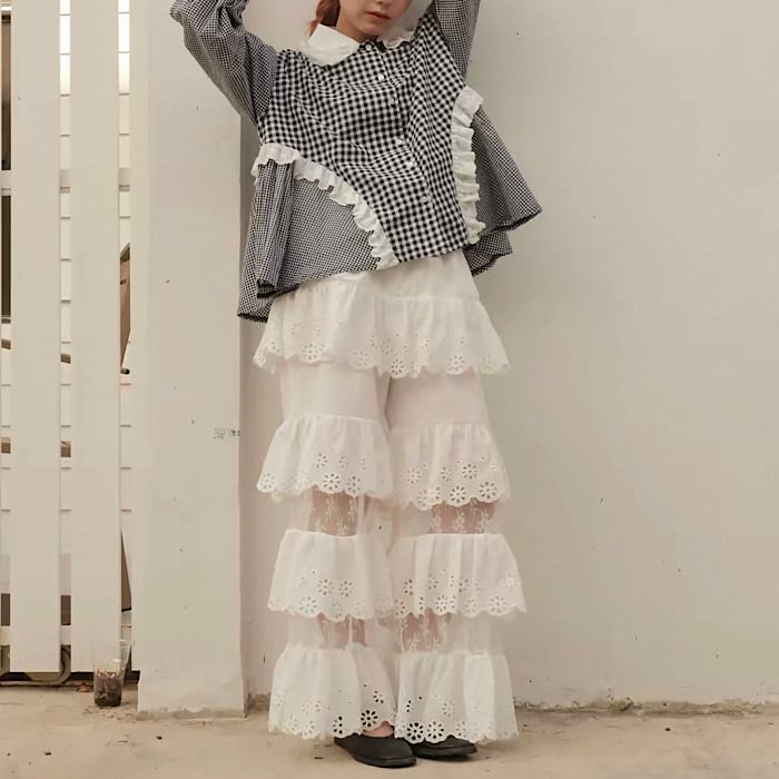 【予約】パンチングレース×フレアパンツ