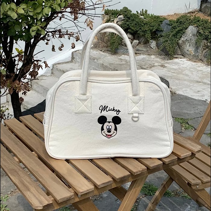 ★キャンバス地のミッキー刺繍ボストンバッグです♡パイピングありでレトロっぽいデザイン(^^)
