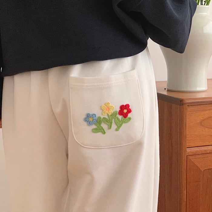 ★ポケットのフラワー刺繍がポイントのジョガーパンツ♡靴下チラ見せもオシャレに◎