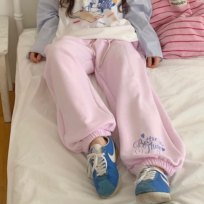 ★落書き風のくまちゃんがポイントのジョガーパンツです♡