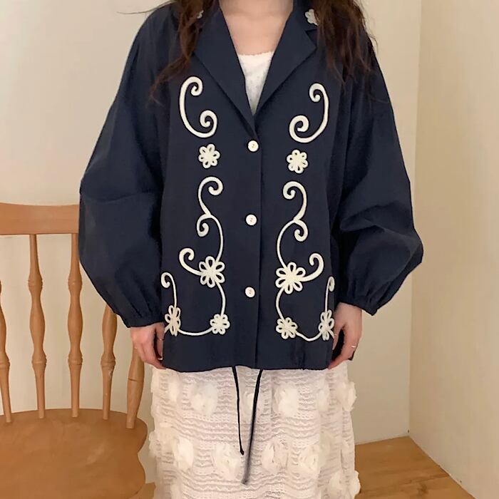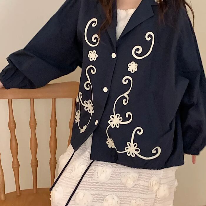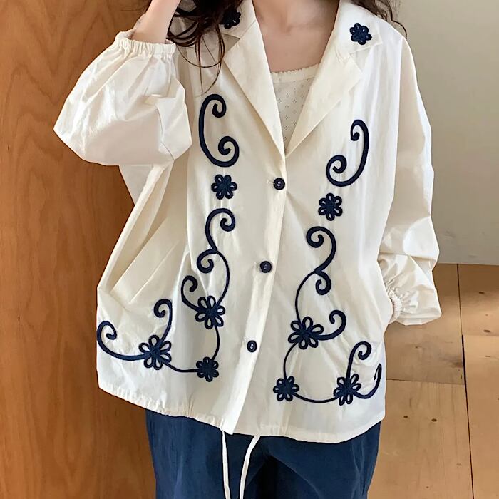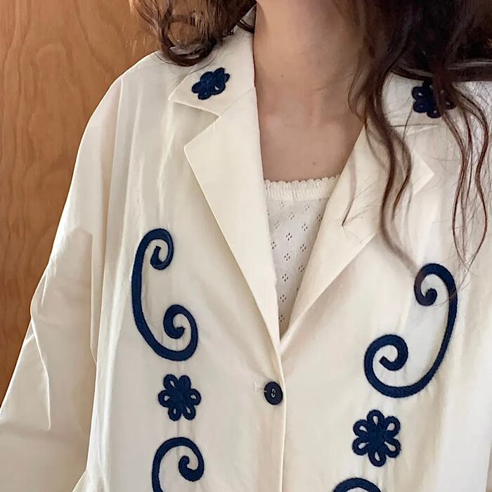 【予約】フラワー刺繍薄手ブルゾン 3color