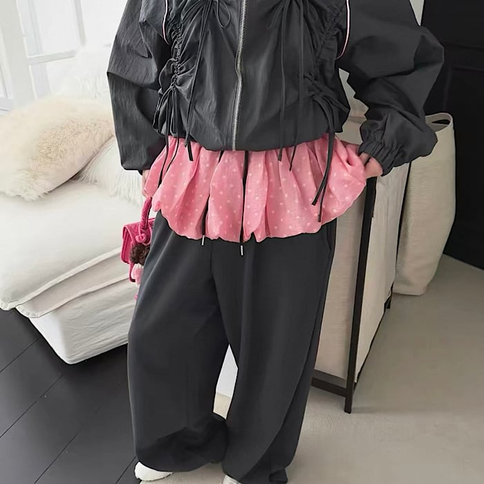 【予約】ドット柄レイヤードジョガーパンツ 3color