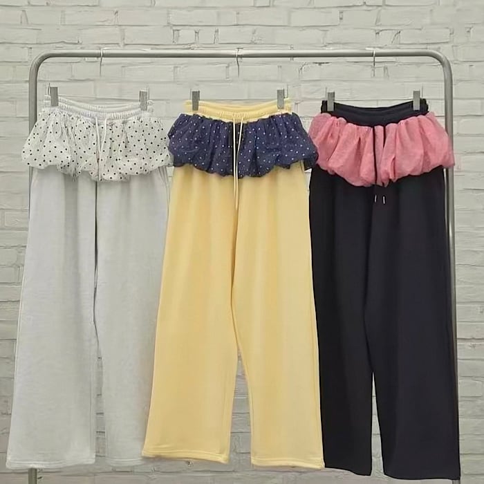 ★ドット柄バルーン付き、レイヤードジョガーパンツです♡