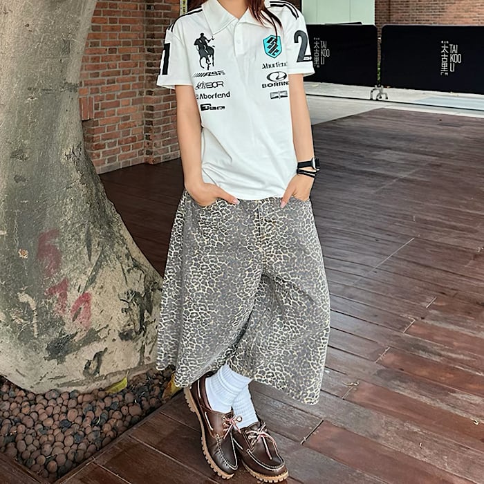 ★ゆったり着用できるヒョウ柄ハーフパンツです♡タイツや可愛い靴下と合わせると可愛いコーデに(^^)