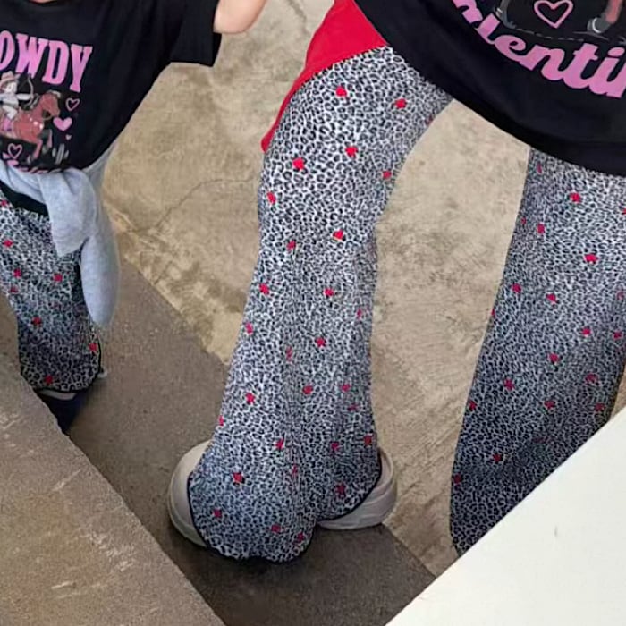 ★ヒョウ柄にハート柄を混ぜた可愛いデザインのプリーツパンツです(^^)