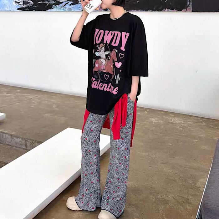 【予約】ハート×ヒョウ柄プリーツパンツ 2color