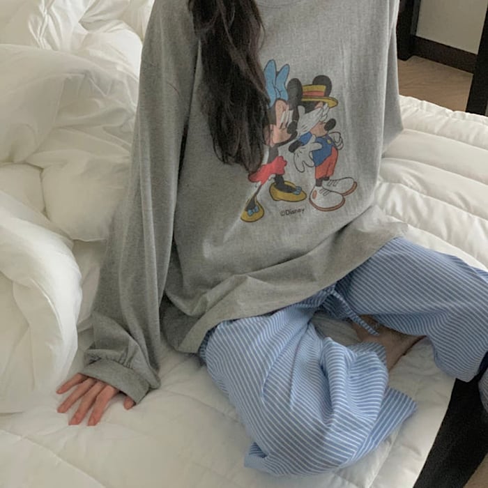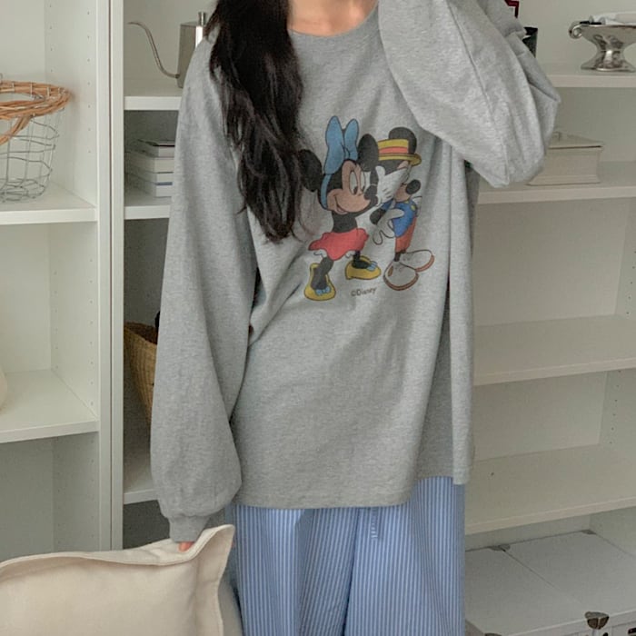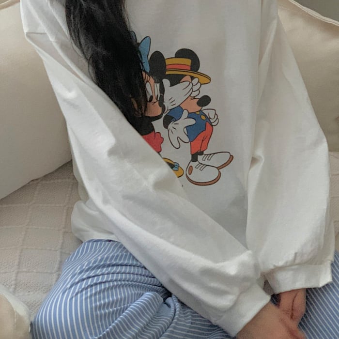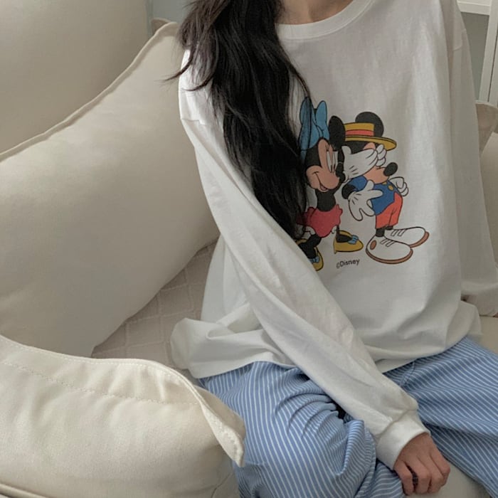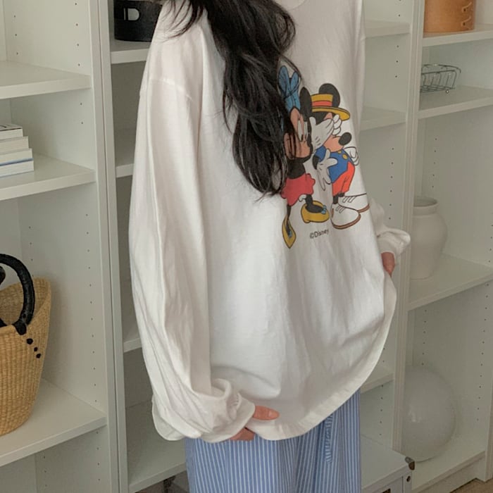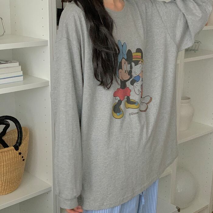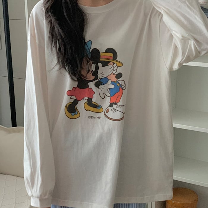 【予約】ミッキーミニー×目隠し長袖Tシャツ 2color ライセンス商品
