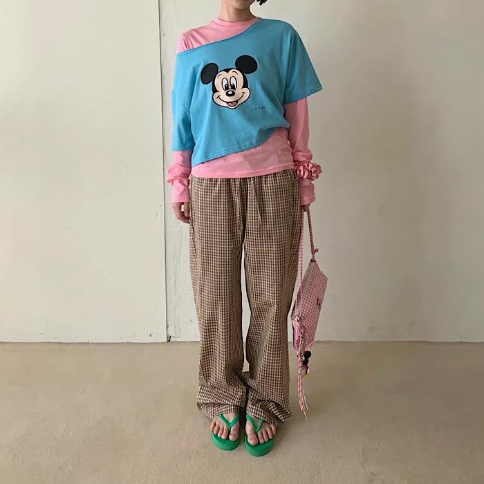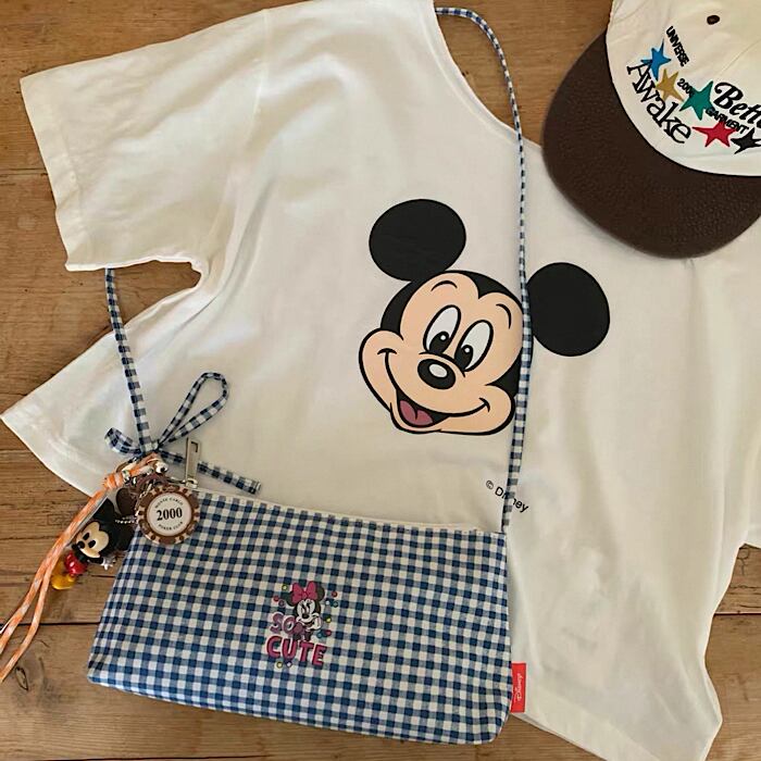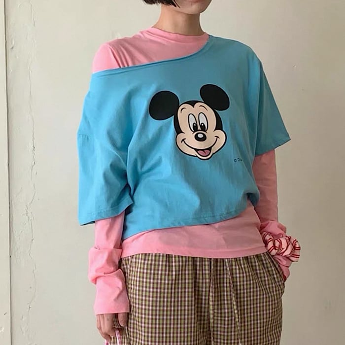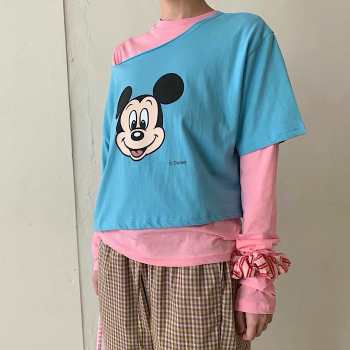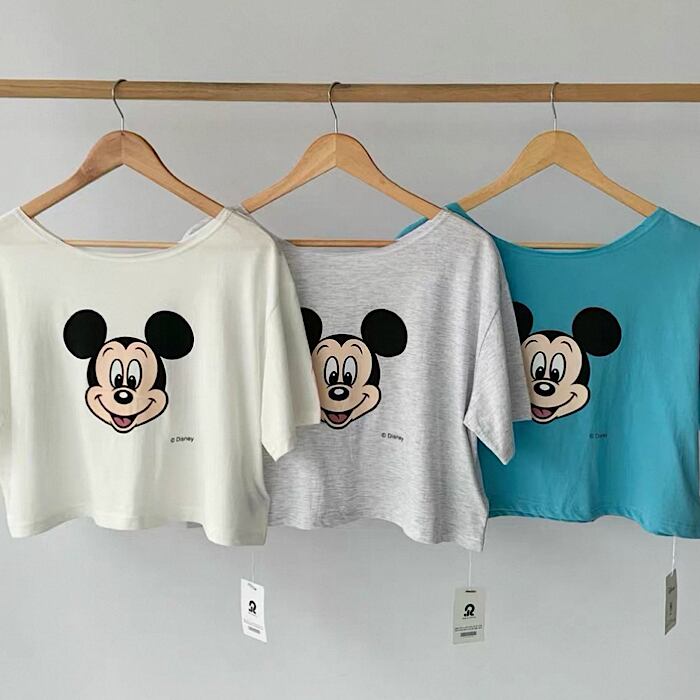 【予約】ミッキーFACE×オフショルダー半袖カットソー 3color ライセンス商品