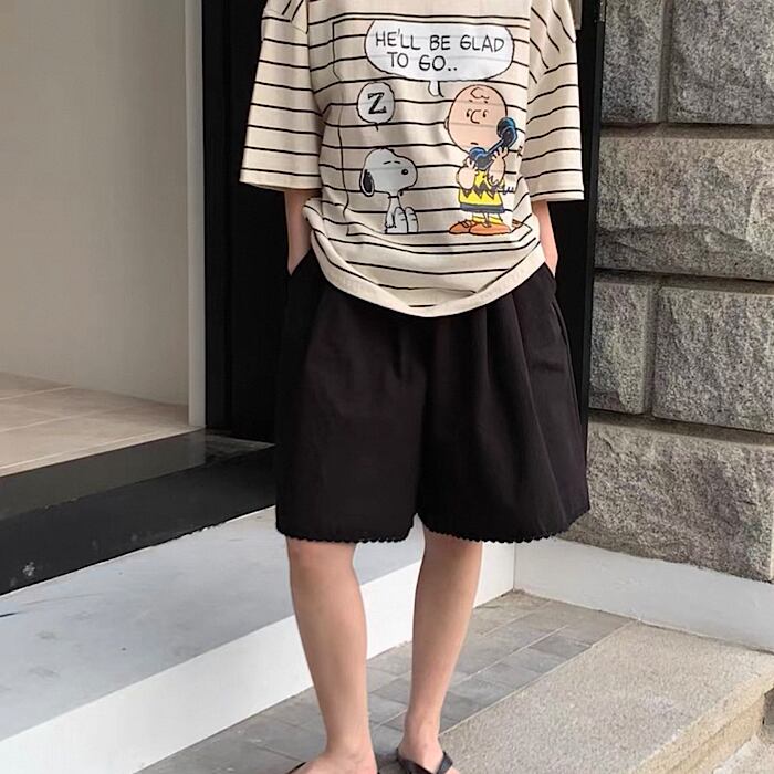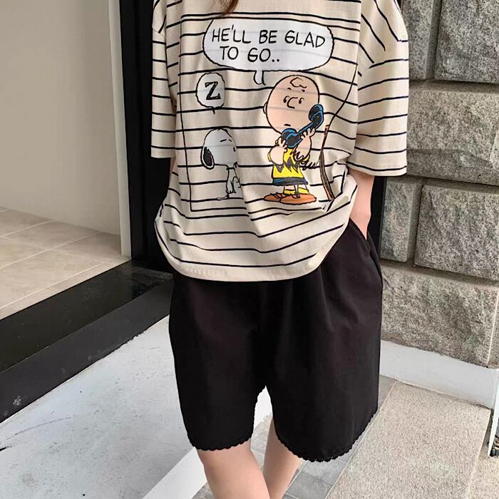 【予約】スヌーピー×チャーリーブラウンボーダーTシャツ 4color ライセンス商品
