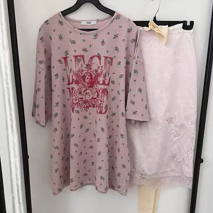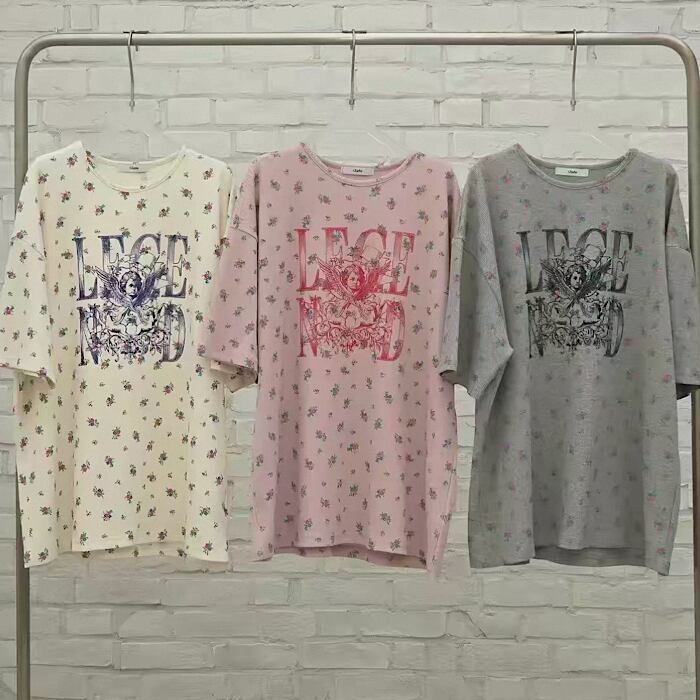 【予約】サーマル×小花柄エンジェルTシャツ 3color